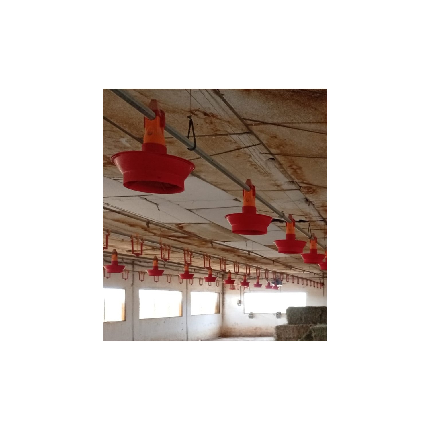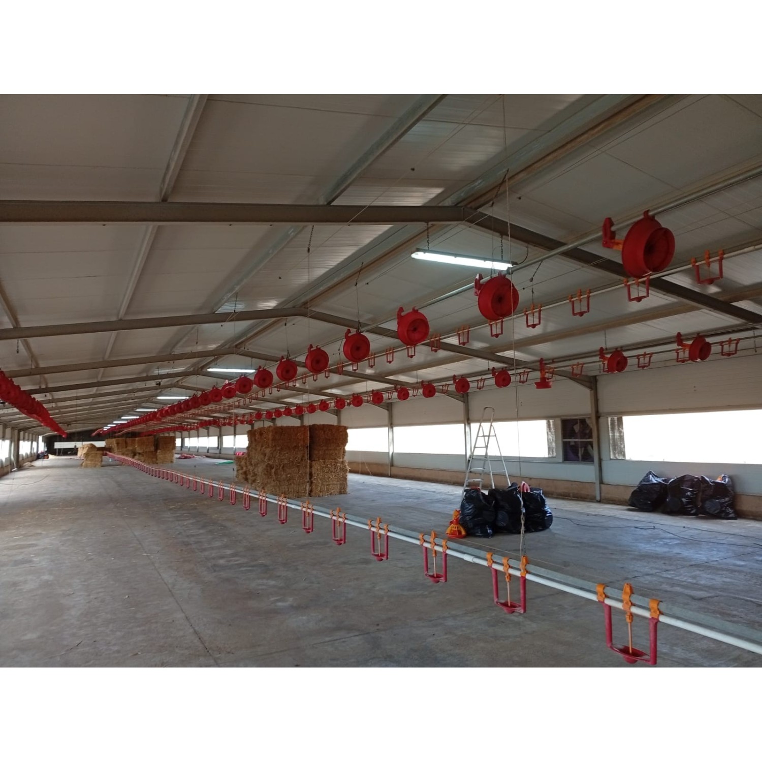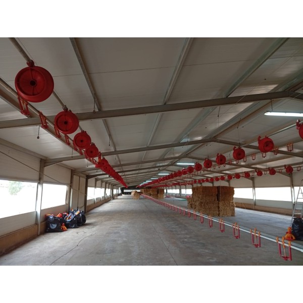 El kit completo está compuesto por 732 metros de tubos con comederos, sinfines y motores correspondientes. Disponible repuestos. Usado en 11-12 camadas durante 4 años