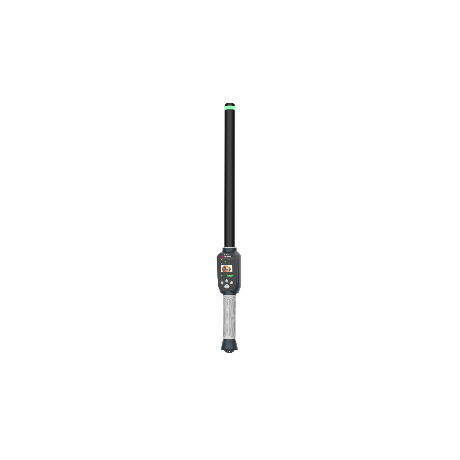 Lector tipo vara bastón RFID multifrecuencia compatible con FDX-B, HDX y EMID (ISO11784/85). Incorpora pantalla LCD de alta luminosidad, memoria para 100.000 registros y conexión mediante Type-C, Bluetooth y 2.4G. Ideal para identificación animal y gestión de datos en granjas.